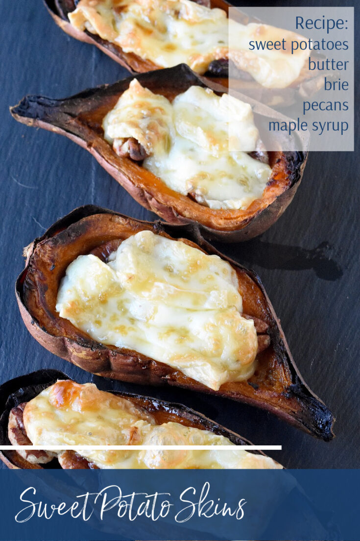 Sweet potato skins boast a subtly sweet and earthy taste that compliments the rest of the ingredients in this recipe. The skins are slightly crispy on the outside with a tender and creamy center, creating a satisfying contrast of textures. Then you add in the salty and rich butter and sweet maple syrup. Both contrasting flavors in these skins. Finally, the crunchy sweetness of the pecans plays against the salty and creamy brie. All these ingredients make these sweet potato skins a decadently delicious appetizer for your game day!