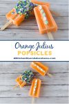 These are not like pudding pops. They are like a frozen orange Julius, hence the name Orange Julius Popsicle. They have orange juice and orange Jell-O in them. The Jell-O is to keep them from freezing so hard they chip your teeth. That’s never very fun. Sugar, alcohol, and gelatin keep ice cream and popsicles from freezing too hard. Just an FYI.