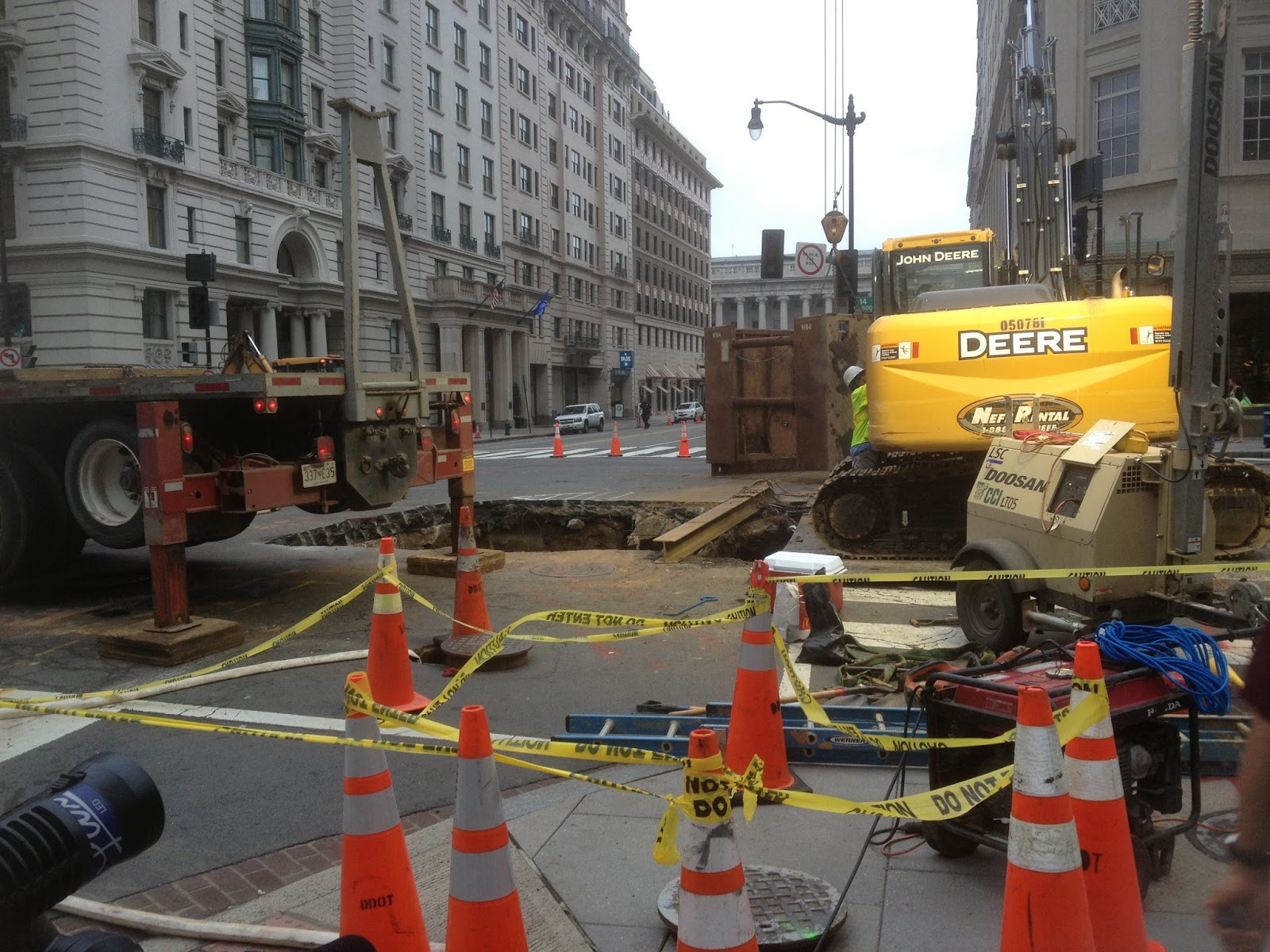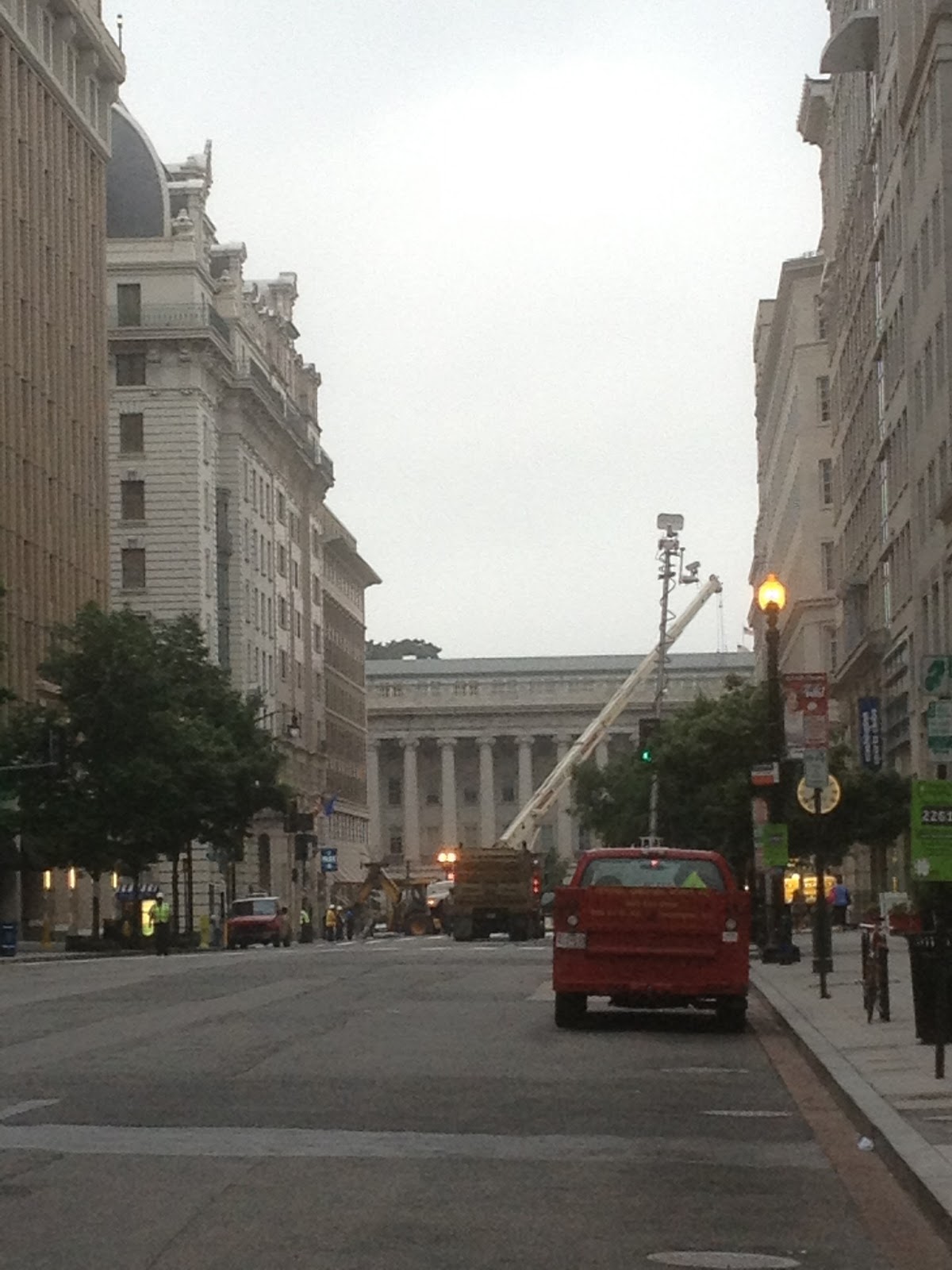 Tuesday, I receive this generic email about “activity” on 14th. The street will be closed between Pennsylvania and G. GREAT! We come up 15th, cut over to 14th on F and then S turns around and goes back up 14th to get to work. Yeah. Ain’t happening until they fix the GIANT sinkhole in the middle of the intersection.