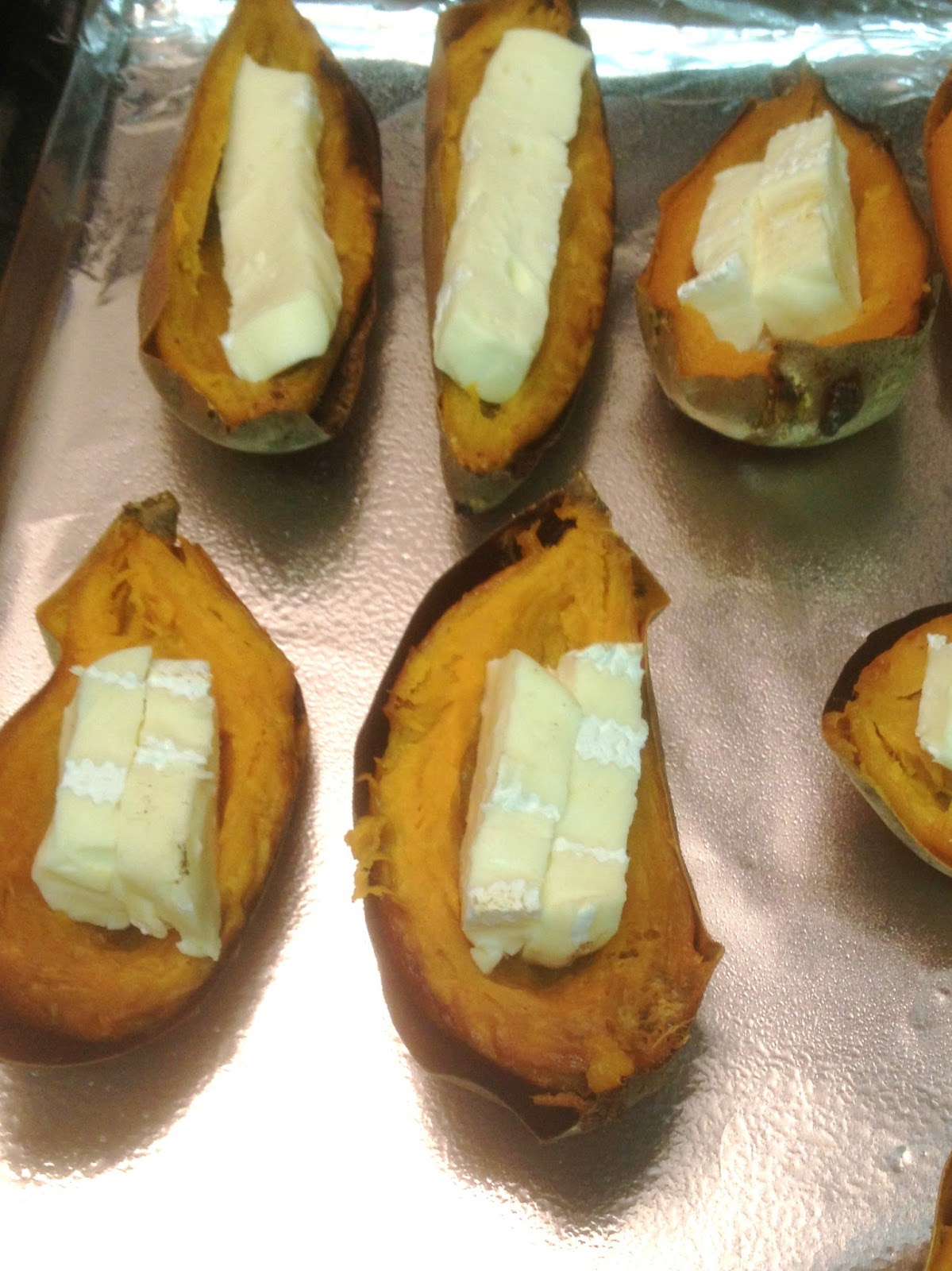 I love these sweet potato skins. You melted brie cheese in there, that's my favorite cheese. YUM!